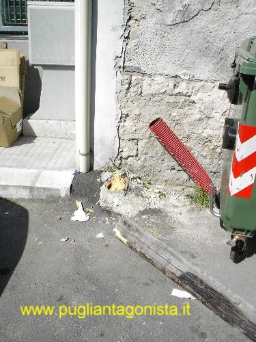 Ore 12.00 Brindisi Via Lucio Strabone angolo via Appia: Tragedia sfiorata oggi al quartiere Cappuccini a mezzogiorno in punto a causa di un palo di legno di circa sei metri di altezza precipitato sulla strada a causa del deterioramento della base che poggiava nell’ asfalto. Il caso ha voluto che la sua caduta non abbia coinvolti né passanti né auto con i loro occupanti e che non ci fosse la solita fila di auto che normalmente si forma in quella stradina, che rappresenta, per coloro che vengono dai Cappuccini, la naturale scorciatoia per giungere al termine della Via Appia. Invece, a passare con le loro autovetture davanti a quel palo, un istante prima della rovinosa caduta, sono stati un funzionario della Questura di Brindisi e un collaboratore di Pugliantagonista.it che hanno sentito dietro di loro il pesante rumore che ha accompagnato la rovinosa caduta. E’ stato lo stesso poliziotto ad avvisare immediatamente i vigili urbani che sono prontamente intervenuti chiudendo al traffico via Lucio Strabone e contattando i presunti proprietari di quel palo di legno, sul quale erano installate numerose cassette di derivazione targate ENEL dalle quali si dipartiva uno strano intrico di fili che si connettevano da una parte all’altra della strada. Il rimpallo delle responsabilità. Quello dei pali, obsoleti, in cattivo stato che costeggiano le nostre strade è una jattura del Comune di Brindisi e nonostante che i vigili urbani, dietro una disposizione ben precisa, avvisino e, richiedano continuamente la loro rimozione, da parte delle società elettriche e telefoniche si interviene con tempi biblici. Spesso poi quei pali abbandonati vengono utilizzati per appenderci striscioni pubblicitari o come supporto per linee elettriche di fortuna dei molti cantieri edili che pullulano per la nostra città. Palo di legno obsoleto e forse riutilizzato? Quel palo di legno la cui base era totalmente marcia, come lo dimostrano le nostre foto è sicuramente un mistero, come un mistero sono quell’intrico di fili che in maniera, a dir poco fortunosa, eran attestati su di esso. Erano ancora in uso le utenze a cui erano allacciati? Normalmente l’ENEL non fa uso di pali di legno, ma come mai vi erano installate delle sue vecchie cassette di diramazione? La vecchia SIP , oggi Telecom, un tempo li utilizzava , ma da decenni ha smesso di usarli per supportare le proprie linee telefoniche aeree e allora perchè quel palo non era stato rimosso? Chi è stato l’ultimo ad usufruirne? L’unica cosa che sappiamo che da indiscrezioni sembra che la scoperta del proprietario di quel palo sarà molto laboriosa e complessa e fortunatamente non c’è nessuna vittima che debba attendere il solito calvario di…complesse indagini . la