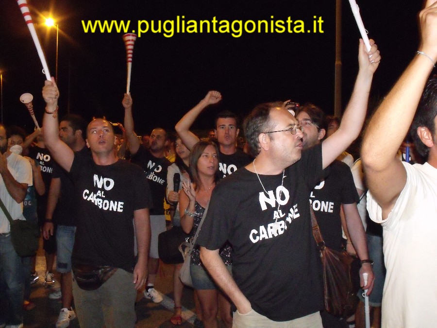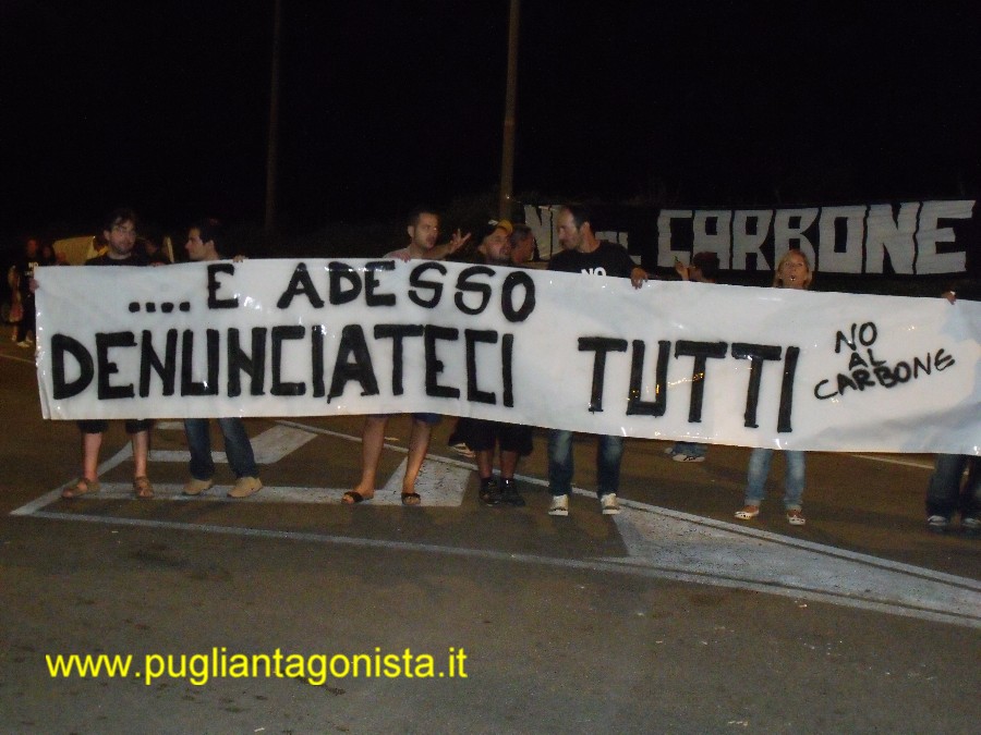 I NO AL CARBONE raddoppiati di numero( oltre 300) rispetto all'anno scorso migliorano le prestazioni con vuvuzela e tanta ironia Patti e Irene , l'Enel vi fa girare come due bambole! - Enel violenta vogliamo la centrale spenta!- Qual'è il costo di una bonifica dinanzi alla vita umana?- E adesso denunciateci tutti!-Ed io pago...!- Questi alcuni degli striscioni impugnati dai manifestanti delle diverse associazioni presenti al controconcerto organizzato dal gruppo no al carbone di brindisi . Vuvuzela fischietti e tamburelli hanno gareggiato con la musica proveniente dalla centrale facendo passare attraverso delle vere Forche Caudine fans, curiosi e "precettati" con famiglie al seguito che in qualche migliaio sono entrati nell'area della centrale sotto i camini dove sono bruciati ogni anno milioni di carbone . Una occasione regalata dell'ENEL che ancora una volta però ha permesso alle ragioni del no al carbone di essere messe sotto gli occhi di coloro che tra mille ricatti e illusioni accettano l'esistenza della Centrale e dell'impatto terribile sul territorio e la salute pubblica. Un confronto pacifico e ironico che è stato disturbato a iniziativa conclusa con un banalissimo incidente automobilistico quando .nella zona poco illuminata, un manifestante mentre manovrava per uscire causava una ferita ad un piede ad un altro ragazzo. L'intervento di soccorso è stato immediato da parte dei No al Carbone e delle strutture sanitarie come testimoniano le nostre foto e che dimostrano che il tutto è stato tutto puramente casuale. Tutti noi ci auguriamo una pronta e piena guarigione dell'infortunato VIDEO SU http://www.youtube.com/user/pugliantagonista#p/a/u/0/DeANMXCuo6E e http://www.youtube.com/watch?v=RBgx4aGcgZY
